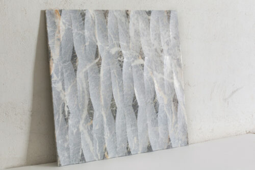 Marble meets the dynamic allure of waves. The Fluctus Collection features 3D coverings with glossy and matte finishes that, when combined with light, create a kaleidoscopic surface that shifts and transforms depending on the angle of view.