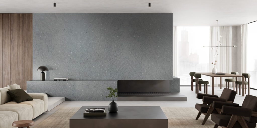 Stone from fire: Basaltite is a volcanic rock created by the hardening of lava. With an elegant uniform grey colour, it is extremely durable and perfectly suited to indoor and outdoor environments, adding a timeless elegance to any decor. Applicable finishes: polished, honed, brushed, bush-hammered.