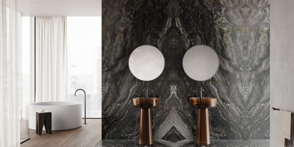 Un materiale che esprime classe ed eleganza. Dal fondo grigio, con numerose venature che vanno dal giallo al rosa, arabescato grigio orobico è un materiale affascinante. Adatto per esterni ed interni. Finiture applicabili: lucido, levigato.