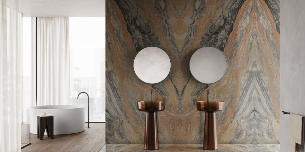 Arabescato Rosso Orobico è un marmo caratterizzato dagli inimitabili colori che vanno a creare sulla sua superficie dei disegni naturali. Presenta infatti marcate striature irregolari, grigie, rosse e gialle. É un marmo indicato per ambienti interni. Finiture disponibili: lucido, levigato.