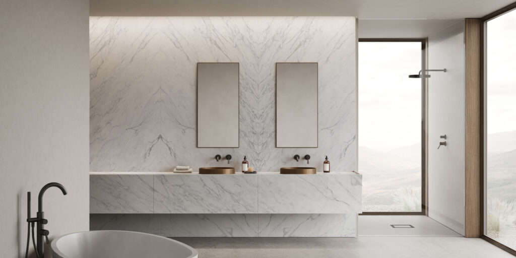 Bianco Statuario è una pietra pregiata con una base composta da calcare bianco cristallino decorata da venature grigie. É un marmo indicato per ambienti interni. finiture disponibili: lucido, levigato.
