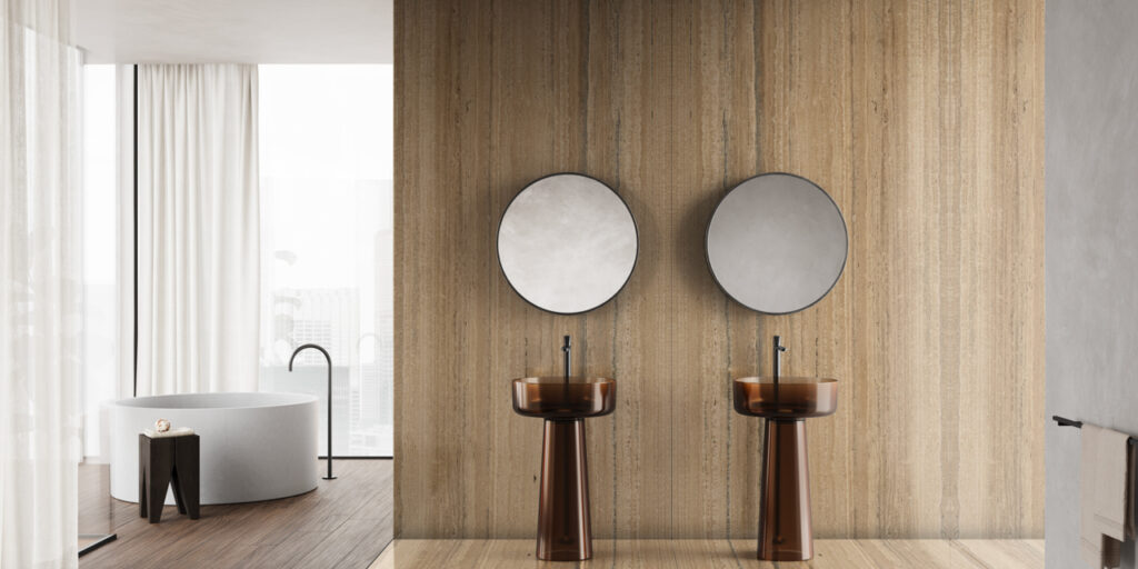 Questa pregiata qualità di travertino fa del fondo aranciato e delle sue peculiari venature argentate i suoi punti di forza. Alla resistenza del travertino si unisce l'incredibile eleganza di queste striature. Una combinazione estremamente apprezzata per qualsiasi soluzione, interna ed esterna. Finiture applicabili: lucido, levigato, spazzolato, bocciardato, sabbiato.