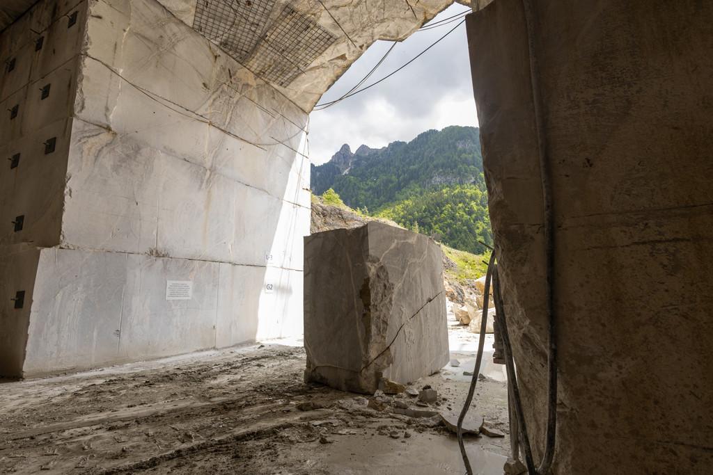 C'è un solo posto al mondo dove si estrae: le Alpi Carniche, a nord di Forni Avoltri, in prossimità del confine austriaco. Una sola cava a cielo aperto, di proprietà esclusiva Margraf dal 1927. Questa unicità geografica non è un dettaglio: è la garanzia che ogni lastra porta con sé una storia geologica irripetibile, quattrocento milioni di anni di stratificazione marina e metamorfismo alpino condensati in venature che non si trovano da nessun'altra parte.